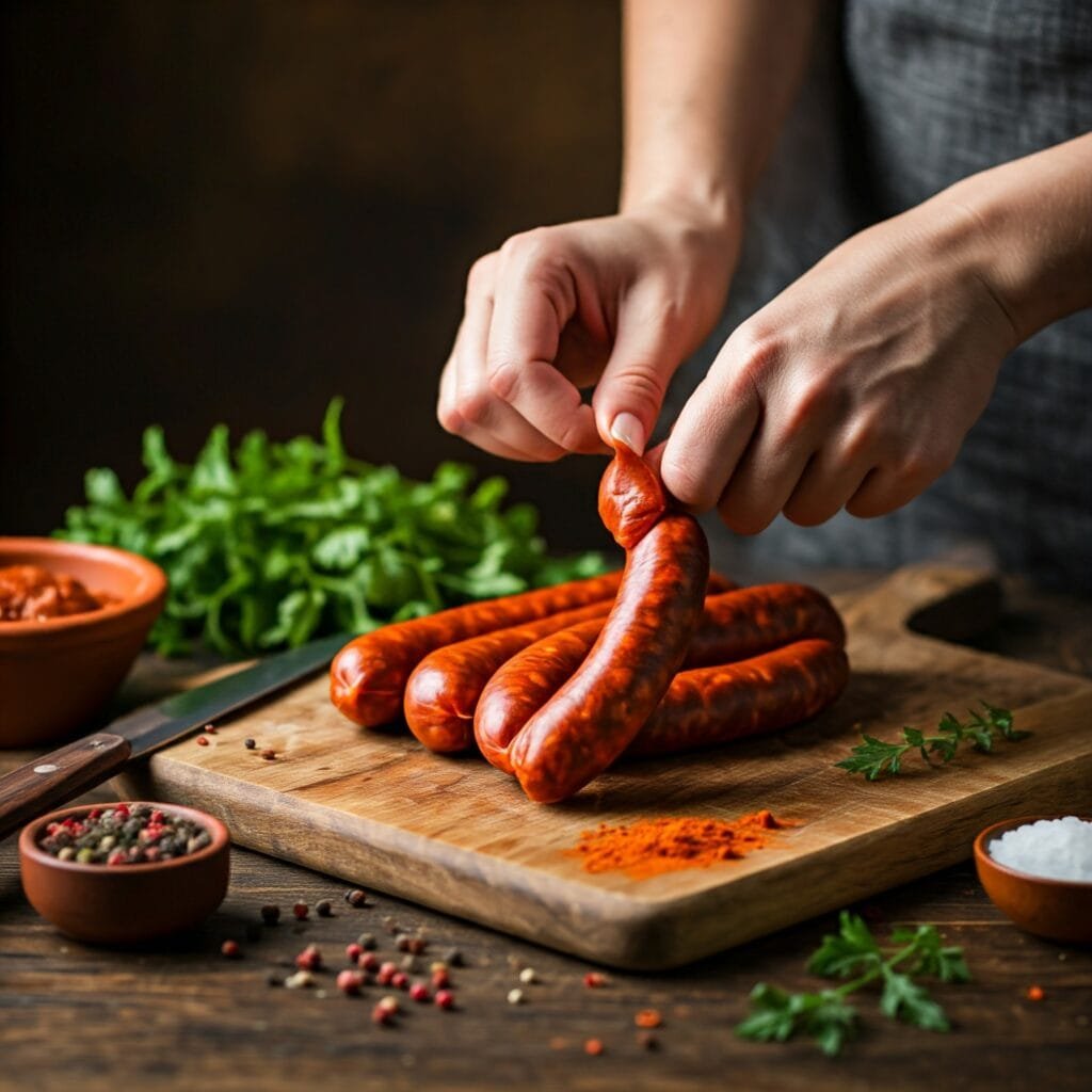 . Remueve la envoltura de los chorizos y desmenúzalos.